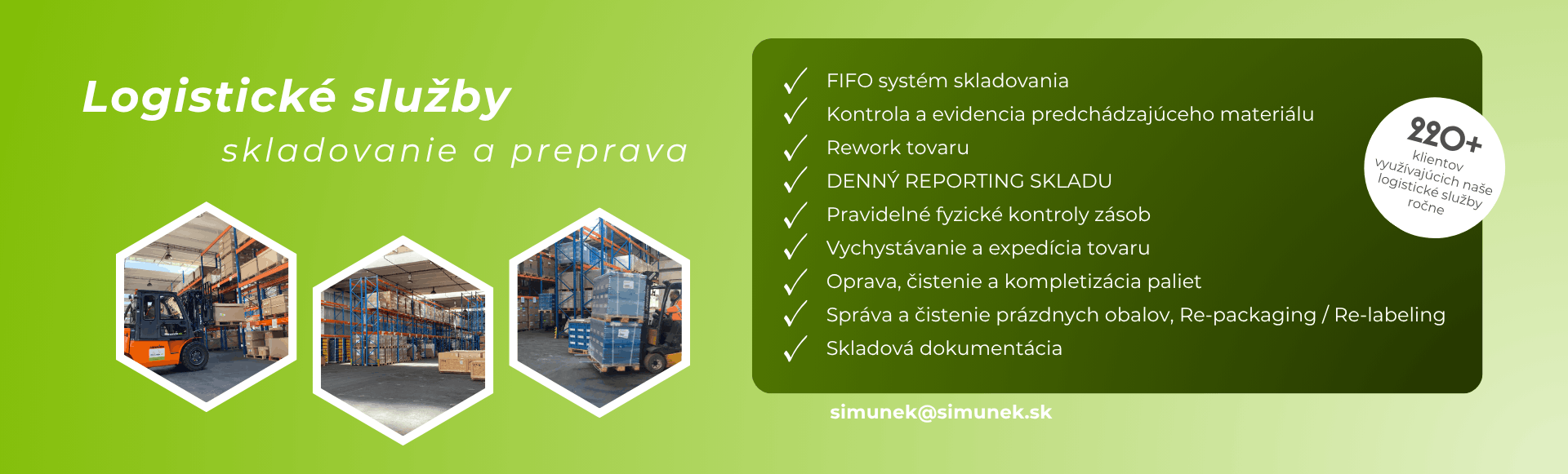 Pre svojich klientov okrem skladovania zabezpečujeme vychystávanie, prebaľovanie, kontrolu a v neposlednom rade aj napríklad čistenie manipulačných jednotiek.
