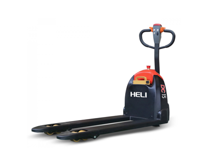 PopisNový paletový vozík HELI na elektrický pohon HELI WX 15 BJ-LI2. - dĺžka lyžín 1.150 mm - šírka vozíka 550 mm - min. výška nad podlahou 85 mm - max. výška nad podlahou 200 mm - hmotnosť vozíka 138 kg - kolesá riadiace / AIPUR / Ø 210x70 mm - kolieska vidlicové / PUR T / Ø 80x60 mm (Tandem) - dĺžka vozíka 1.543 mm - farba červeno-čierna - lítiová batéria 24V/28Ah, nabíjač 24V10A